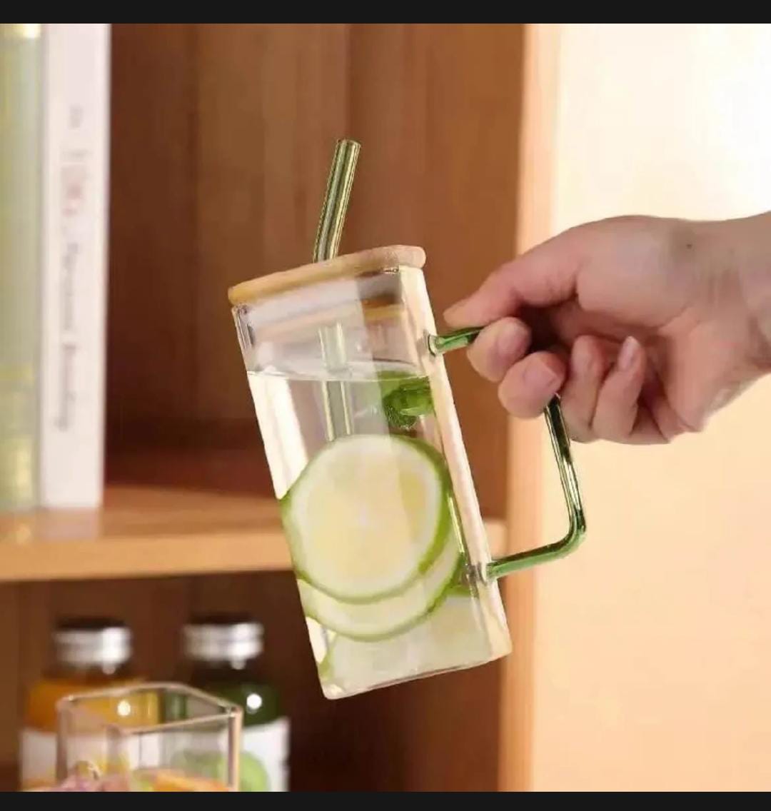 Sip in style with our premium square glass mug — perfect for coffee, smoothies, iced tea, or fresh juices. Crafted from high-quality transparent glass, it features a sturdy handle for comfortable grip, an eco-friendly bamboo/wooden lid for spill protection, and a reusable straw for sustainable sipping.